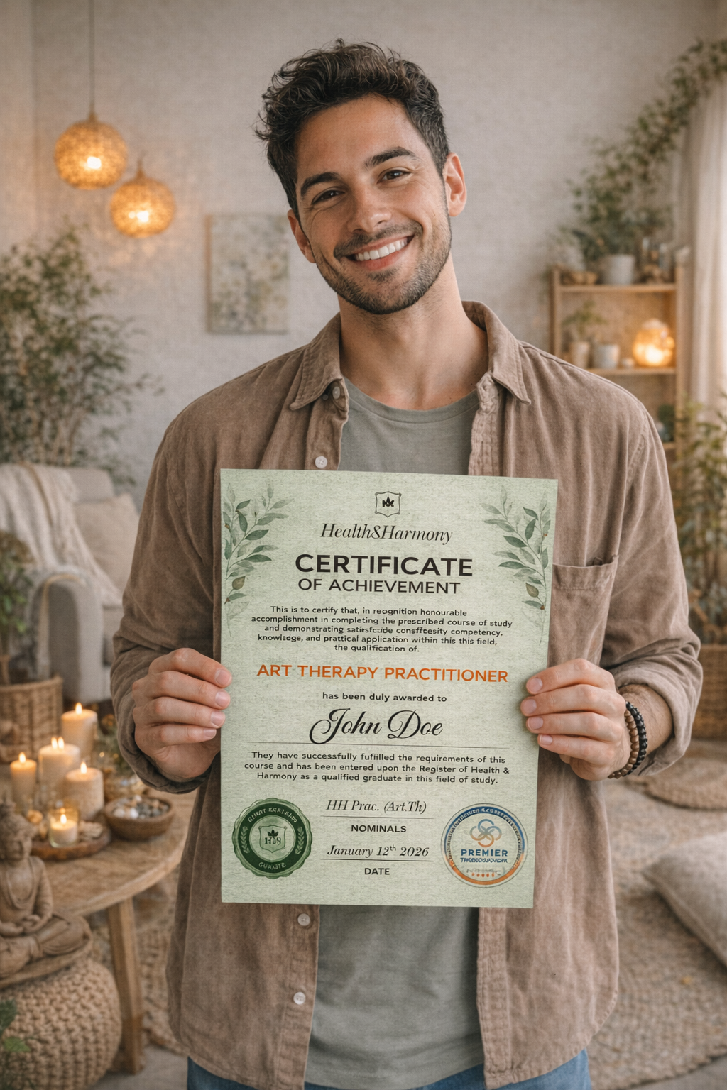 If you would like a professionally printed certificate mailed to you, we offer a premium printed option which includes high standard printing and an embossed silver foil seal featuring the Health and Harmony crest.