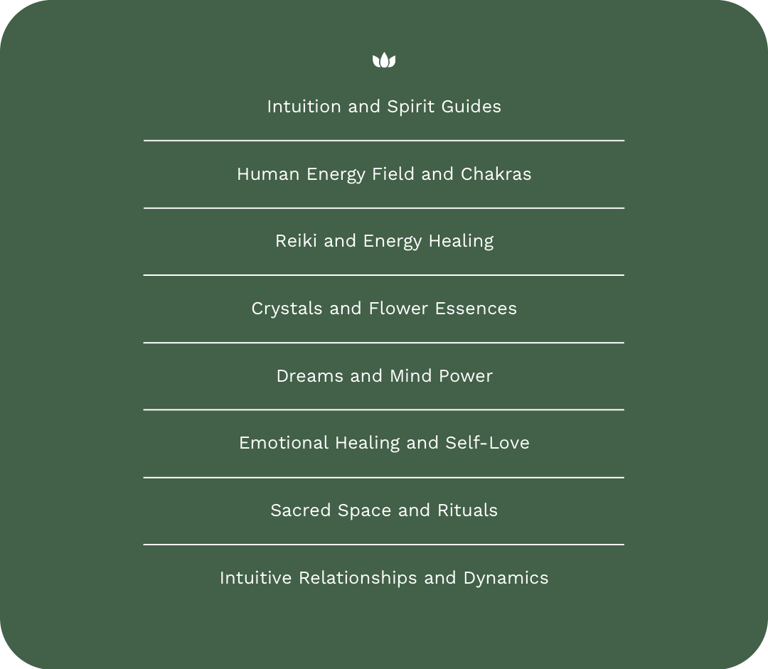 This transformative course cultivates your inner guidance, intuitive abilities, and spiritual connection, equipping you to heal yourself and others. Explore techniques for energy healing, emotional well-being, and sacred practices, and develop a deep understanding of intuitive relationships.